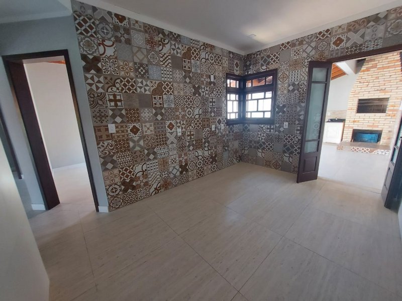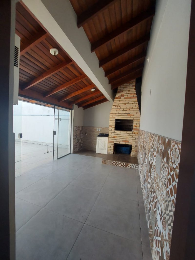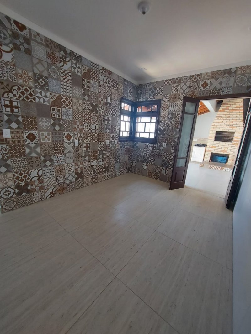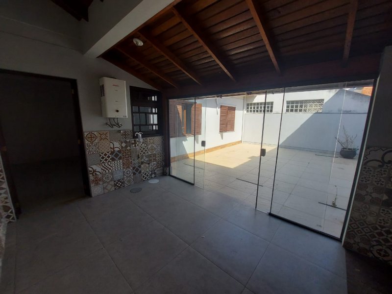 Casa com 3 dormitórios sendo uma suíte com hidromassagem, banheiro social, sala ampla com pé direito alto todo de madeira de lei,cozinha, área de serviço, são de festas com churrasqueira, pátio amplo nos fundos, e na frente jardim.Excelente acabamento, piso porcelanato classe "A".