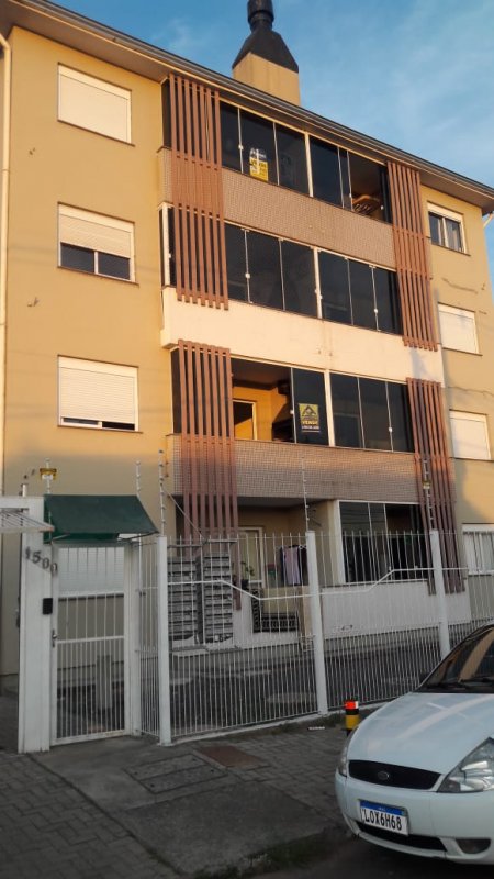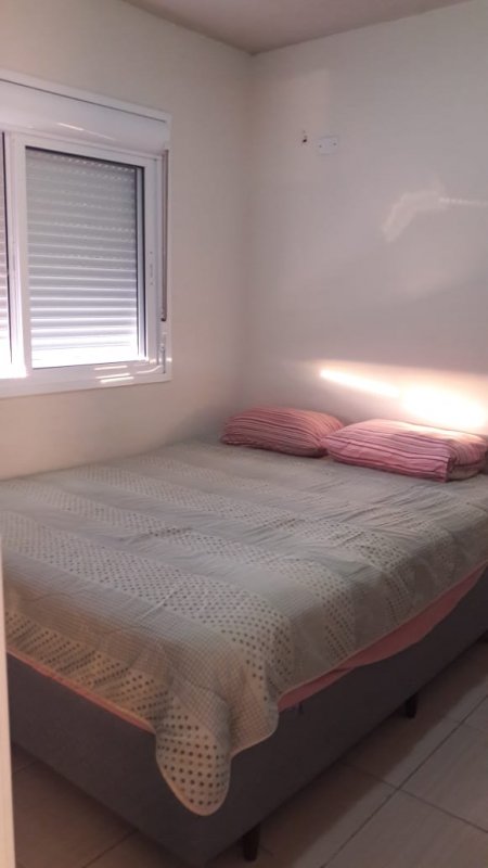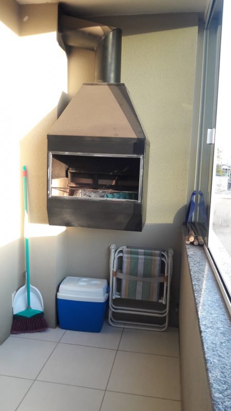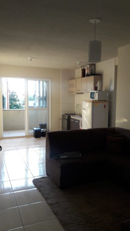 Apartamento com 2 dormitórios, sala de estar e cozinha conjugados, banheiro social, sacada ampla com churrasqueira, bem ensolarado e ventilado, box para um carro.