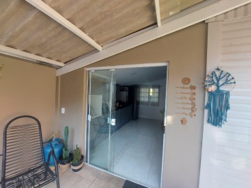 3 dormitórios, 2 banheiros, sala de estar ampla, cozinha, varanda nos fundos,despensa, garagem coberta para um carro, na frente pátio com jardim.