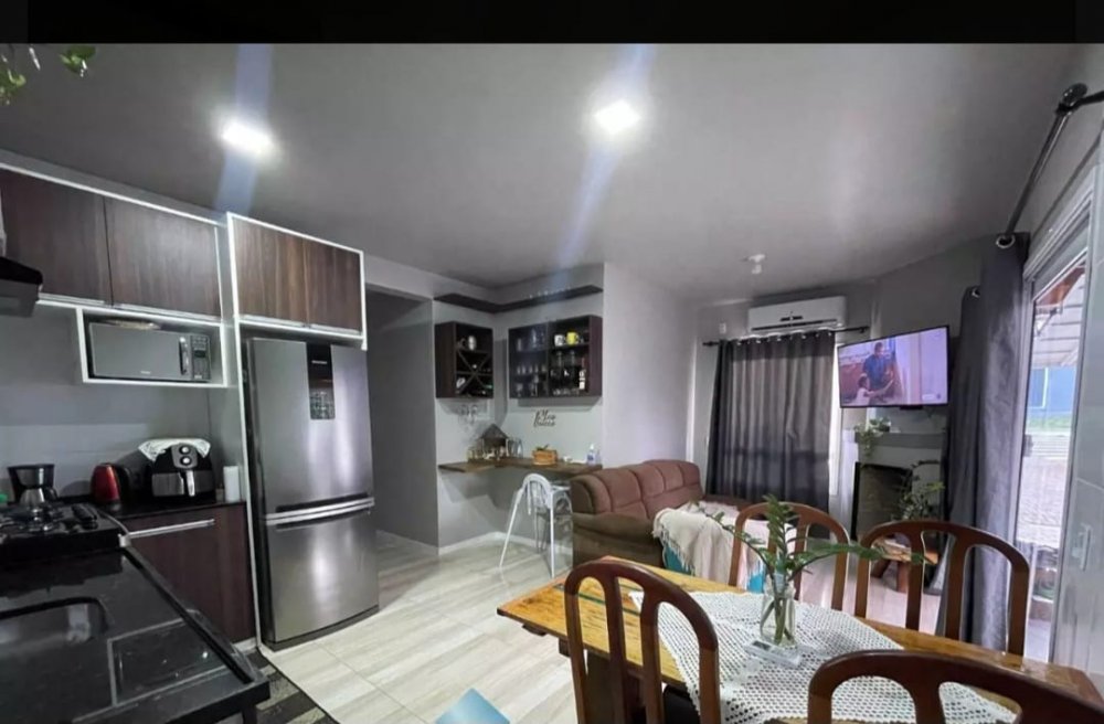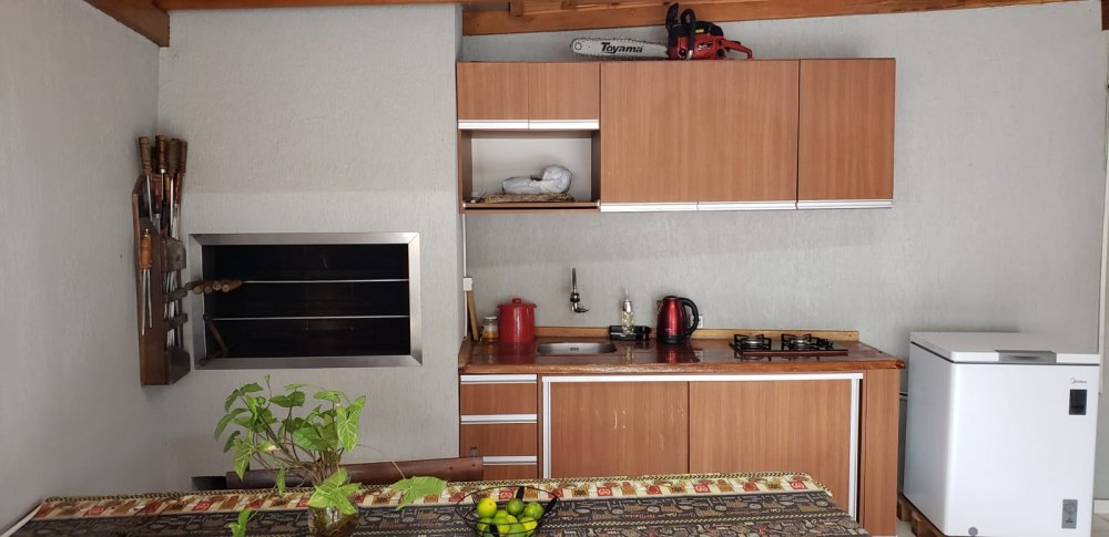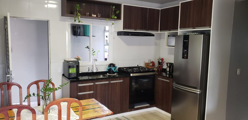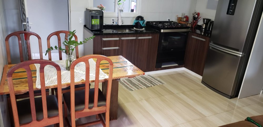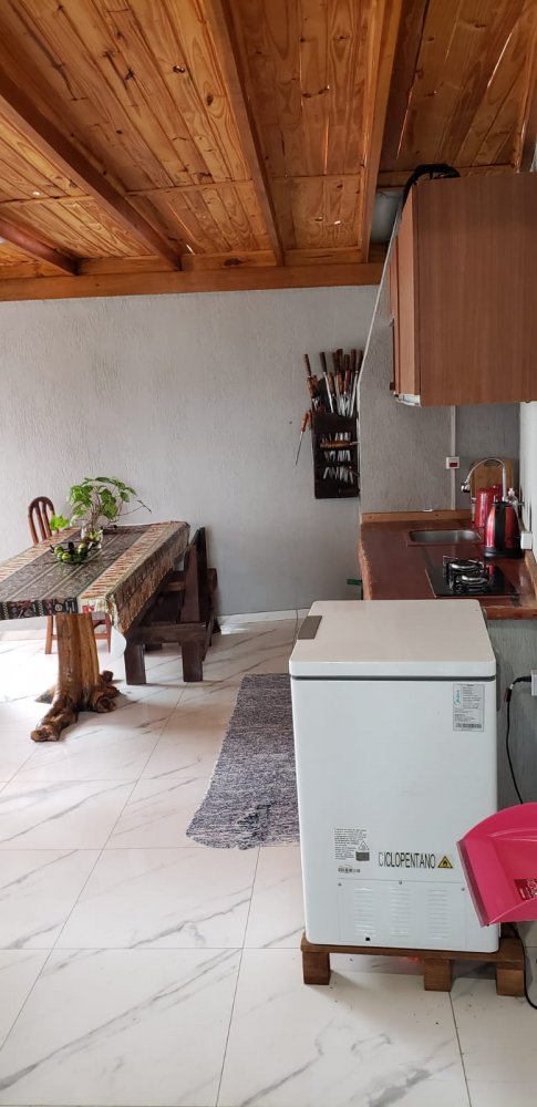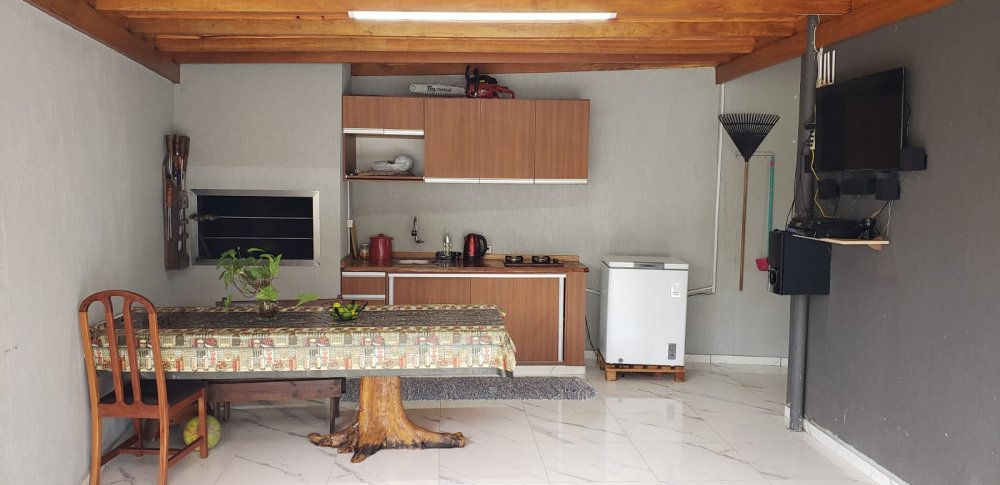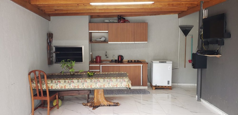 Casa com 4 dormitórios, sendo 1 suíte, sala de estar com lareira, cozinha, banheiro social, lavanderia, garagem fechada com churrasqueira, pátio privativo com espaço para colocar piscina, porão para despensa.