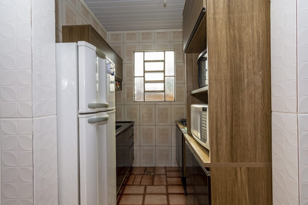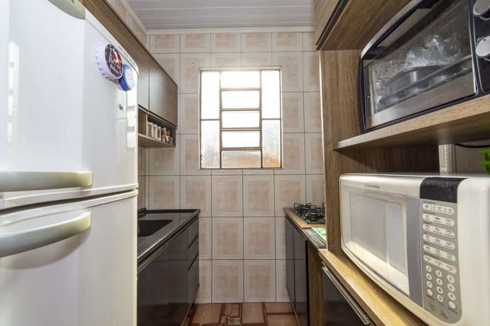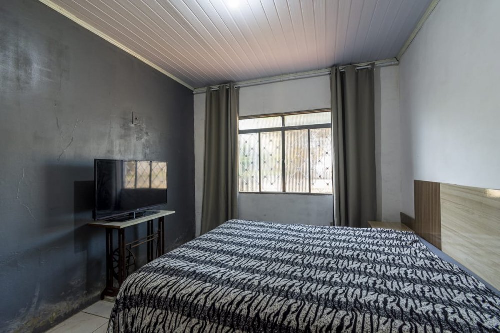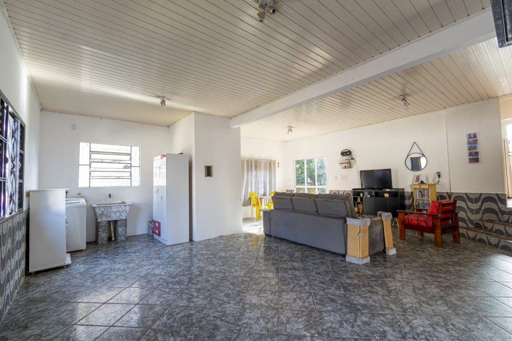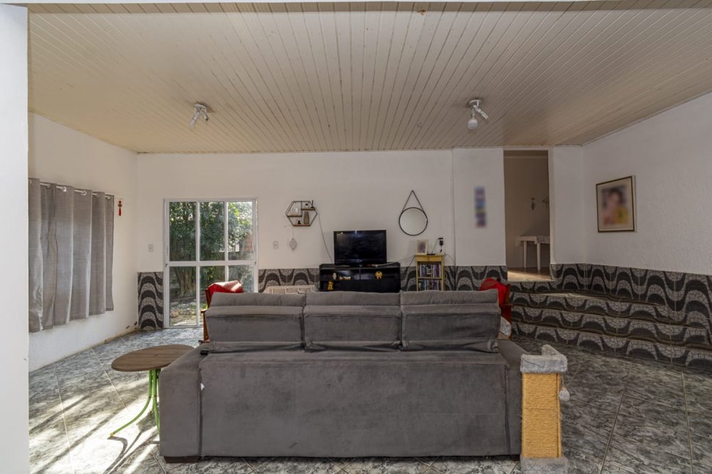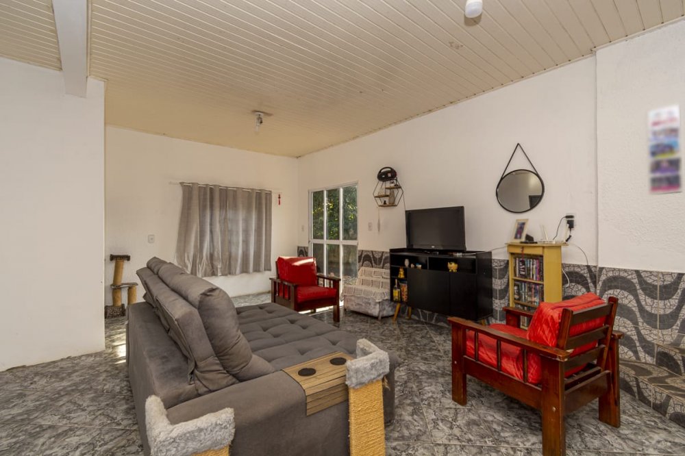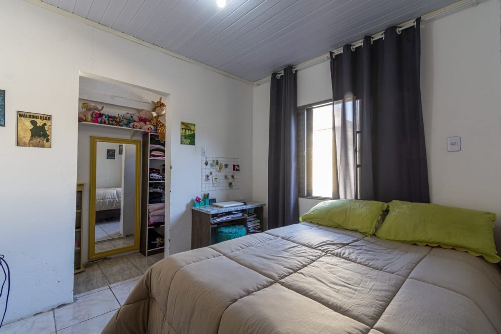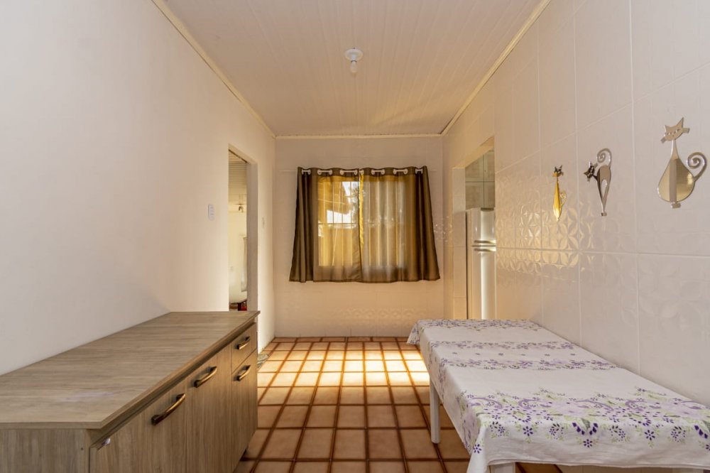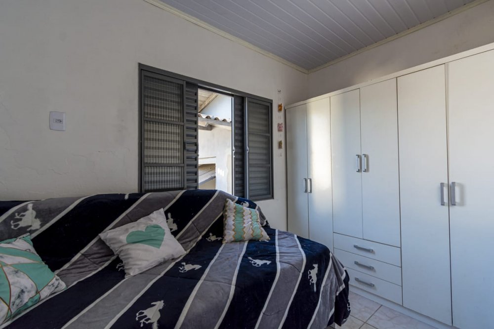 casa com 3 dormitórios, sala ampla de estar, cozinha, dois banheiros sociais, garagem fechada para dois carros e mais alguns no pátio, que é amplo.