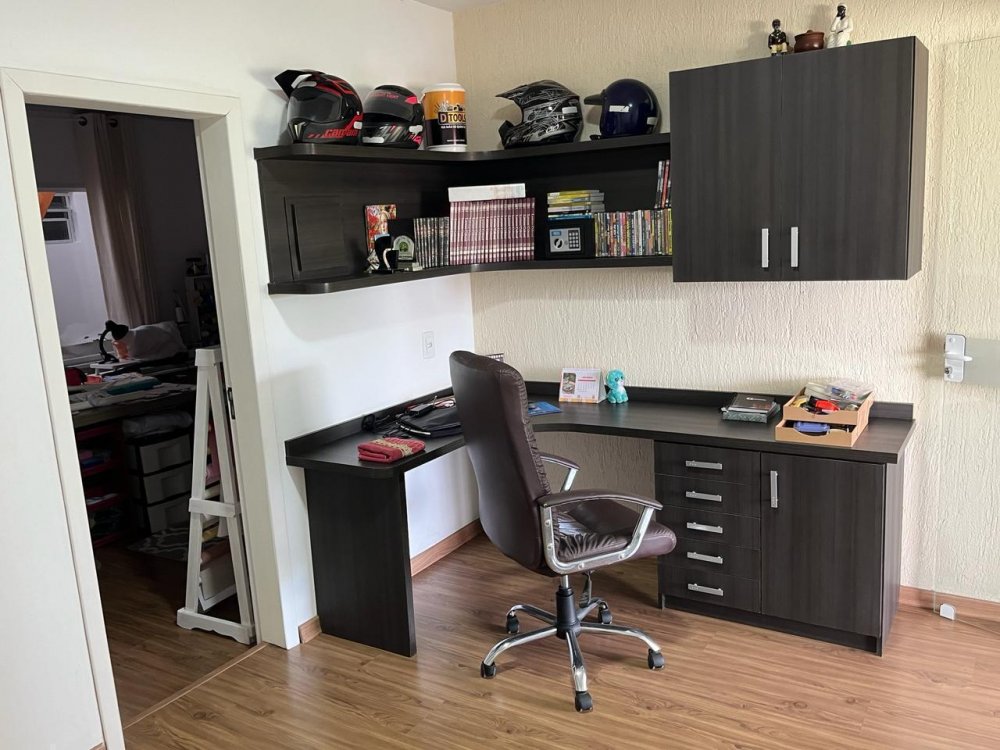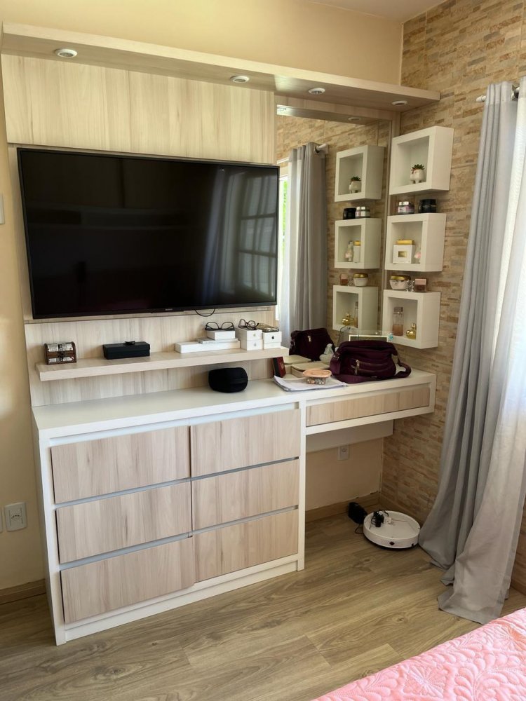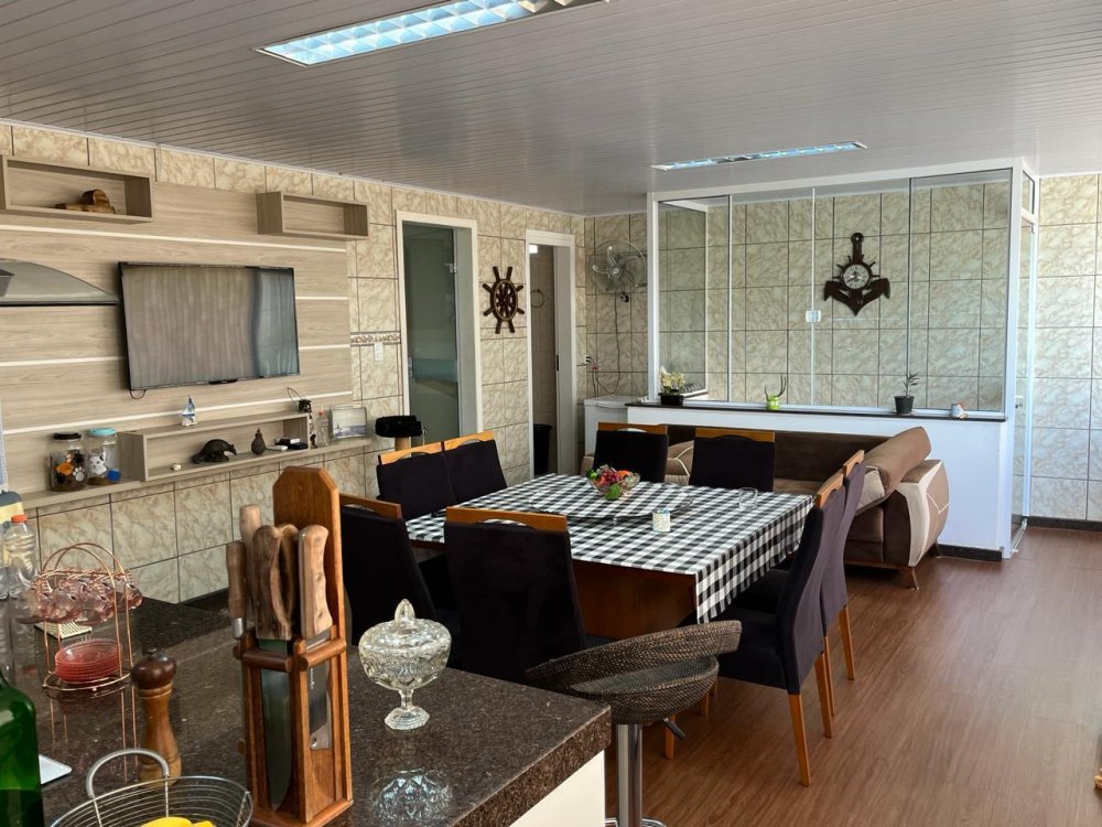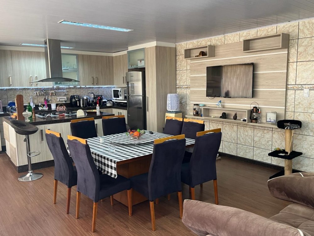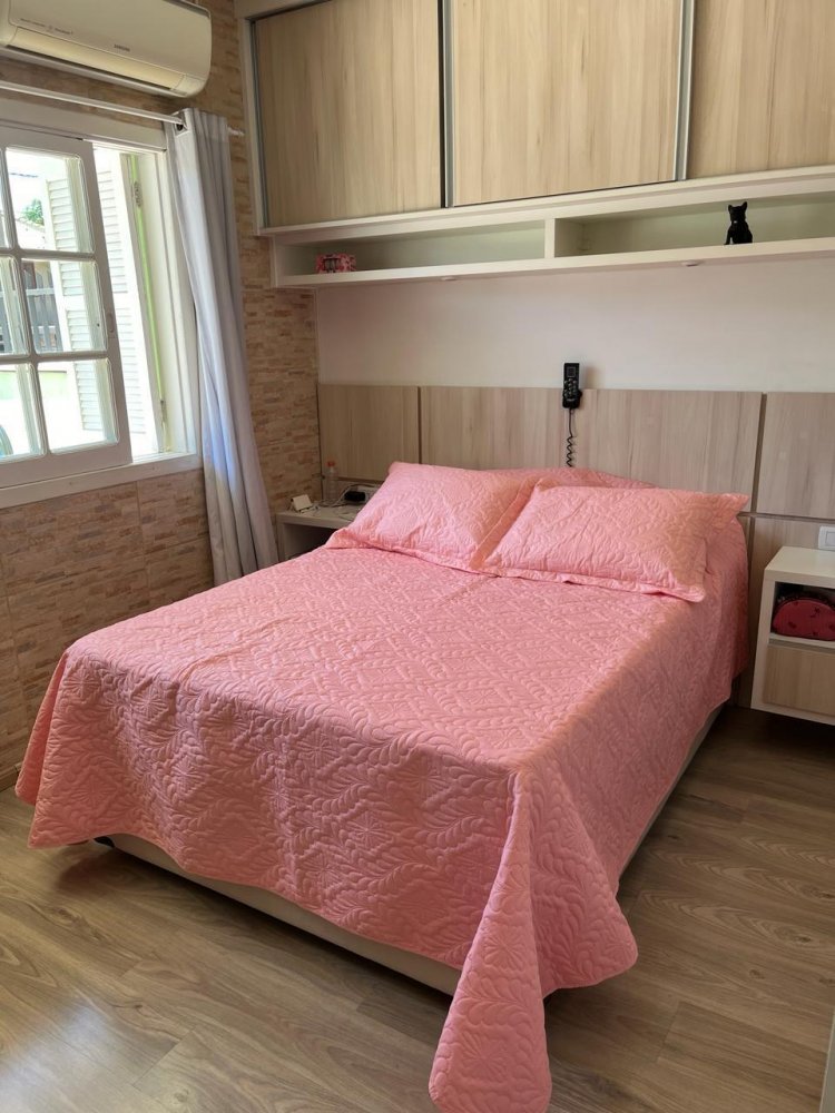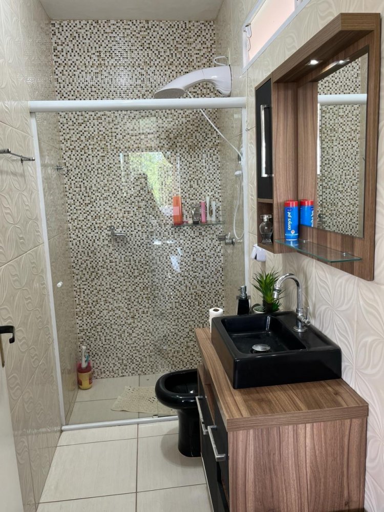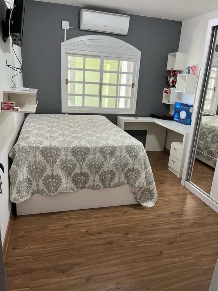 Casa com 3 dormitórios, sendo uma suite mobiliada, 3 banheiros, sala de estar, cozinha sob medida e com ilha, garagem para 3 carros, churrasqueira, pátio com piscina com iluminação e cascata.