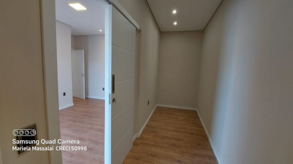 Piso laminado nos quartos e closet, Aberturas em alumínio preto, Portas internas em PVC