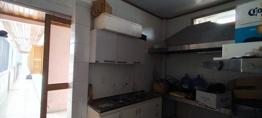 Espaço para comércio na frente da casa, com cozinha de lancheria montada, e espaço de salão.