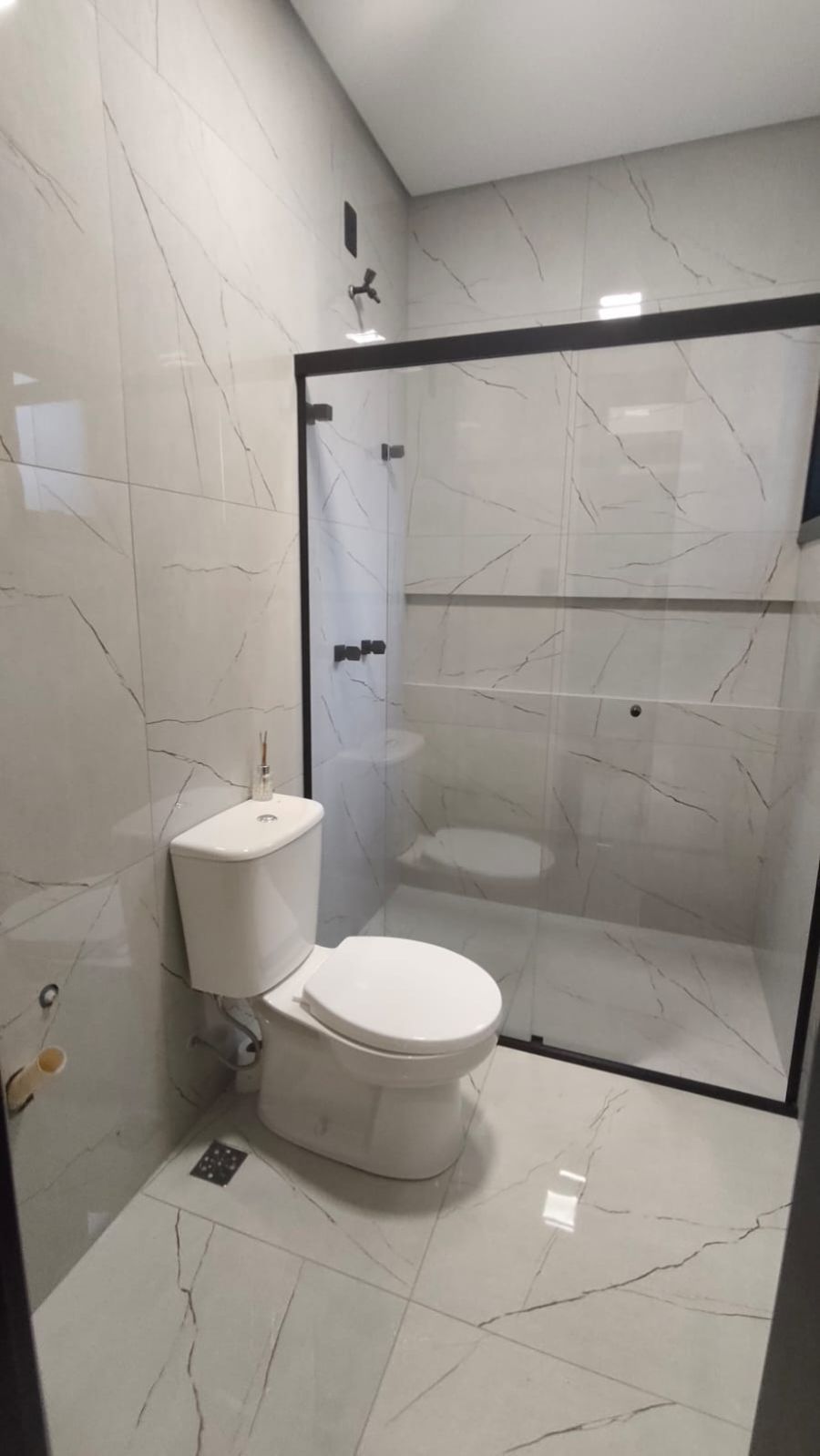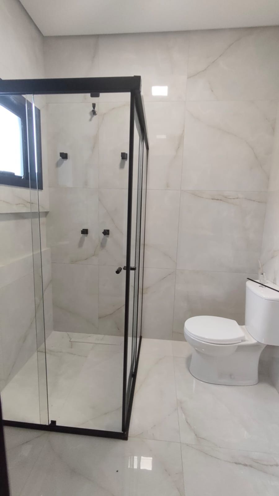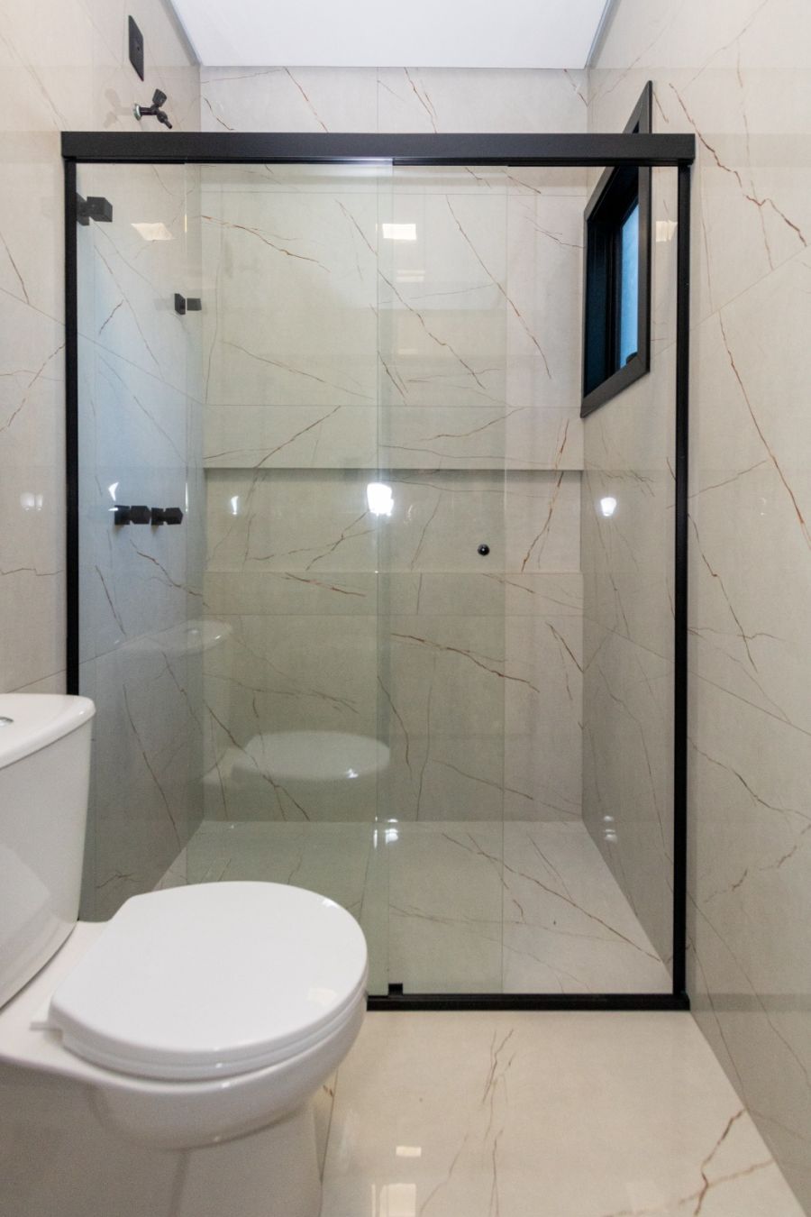 Boxes nos banheiros com acabamento preto